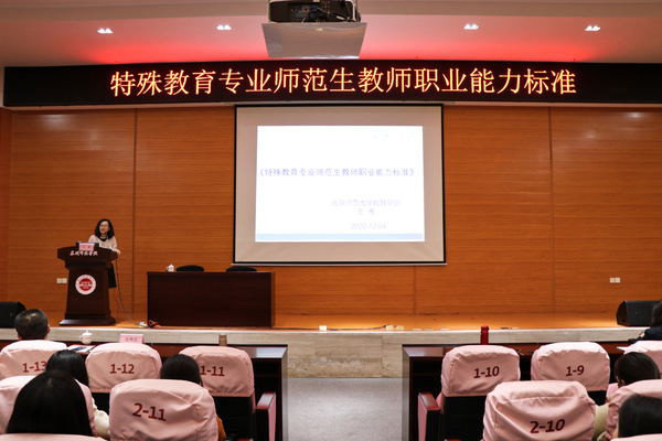 为促进特殊教育师范生专业发展,培养高素质的特殊教育教师队伍,12月4日,教育科学学院于特教大楼开展以“特殊教育专业师范生教师职业能力标准”的专题讲座。本次讲座特邀北京师范大学教育学博士生导师王雁为主讲人,我校特殊教育师范生聆听此次讲座。