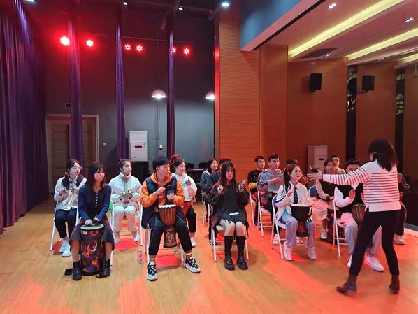 在邵华老师以及艺术教研室陈佳老师的组织和带领下,学生正在体验音乐治疗的相关活动