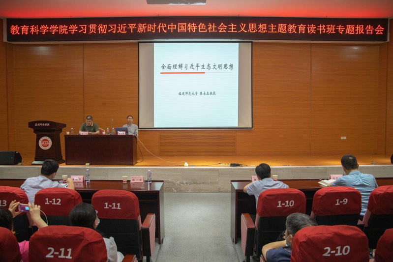 5月18日,教育科学学院举办学习贯彻习近平新时代中国特色社会主义思想主题教育读书班专题报告会,邀请福建师范大学马克思主义学院博士生导师陈永森教授作题为《全面理解习近平生态文明思想》的专题辅导。院主题教育读书班全体成员、师生党员代表、部分入党积极分子参加辅导报告会。报告会由院党委书记陈一祥主持。