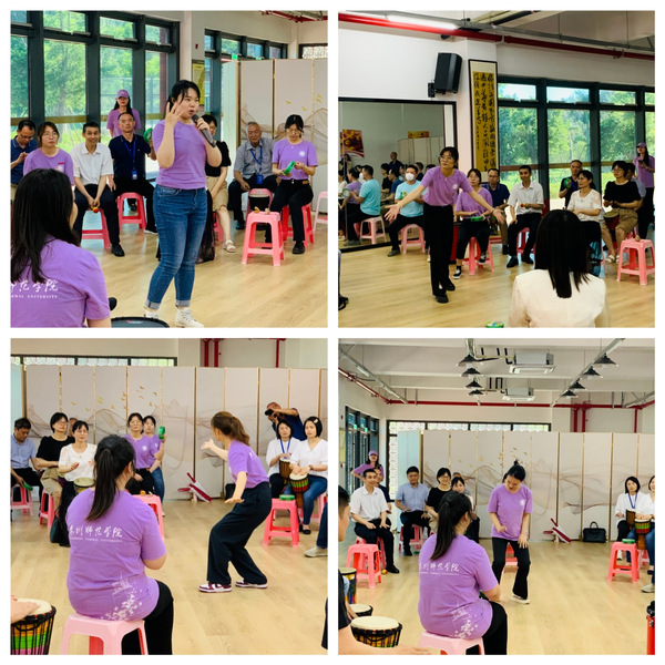 为深入开展学习贯彻习近平新时代中国特色社会主义思想主题教育,进一步提升党建示范引领作用,构建党建共同体,切实以学促干,教育科学学院组成党员团队,发挥专业优势,走进泉州市委党校,开展“我们都是追梦人”红色主题鼓圈艺术融合教育活动。教育科学学院副院长邵华、泉州市委党校机关党委专职副书记张诺维、教育科学学院艺术教育中心副主任陈佳、我校2022级音乐治疗专业全体党员和硕士研究生、泉州市委党校第95期科级干部进修班的学员共60余人参与此次活动。