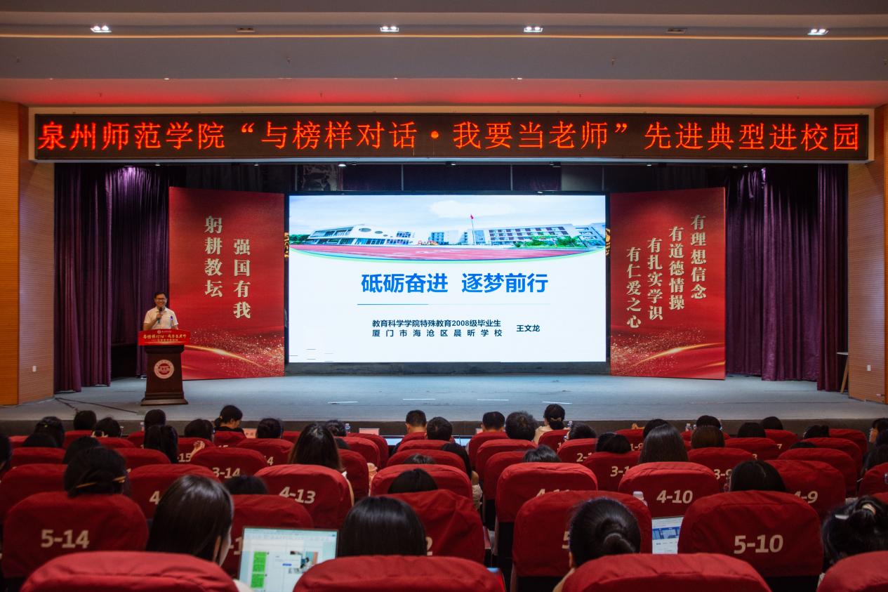 活动邀请英国威廉希尔公司官网附属学校小学部总校长黄志强、厦门市海沧区晨昕学校副校长王文龙、泉州市丰泽幼儿园副园长李庄园、厦门市特殊教育学校优秀教师张碧燕等四位优秀校友走上讲台,结合自身成长和教育工作经历,分享在教书育人路上的点点滴滴,为在场师生带来了一场精神盛宴。