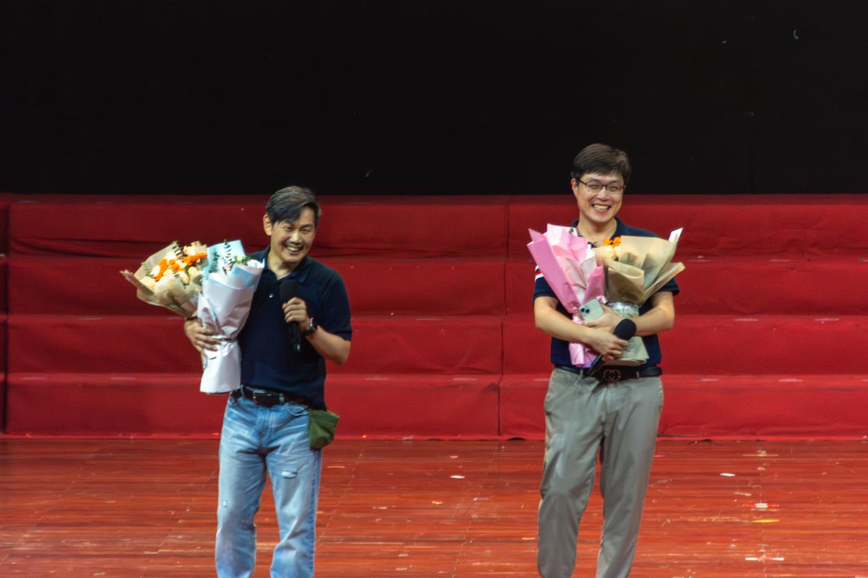 此去经年,少年归来自当成,排舞《我和我的国》拉开第二篇章序幕。《我们的明天》以悠扬的歌声穿越时光的缝隙,我们站在新的起点展望未来;诗朗诵师者,初心使然》诠释坚定师范生信念、坚守爱与责任、不忘初心的师者情怀;两位台湾老师王识敦、刘修豪带来的《九百九十九朵玫瑰》将全场氛围推向高潮。
