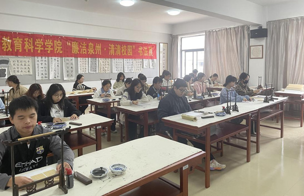 书法是中华民族的文化瑰宝,廉洁是社会和谐的基石。为弘扬廉洁文化,12月12日,教育科学学院举办以“廉洁泉州,清洁校园”为主题的书法比赛。