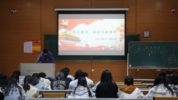各团支部以"学、议、行"为主线,从不同角度切入,深刻阐述了全国两会的重要性以及它所蕴含的深刻指导思想,极大激发了青年人担当时代使命的热情,为祖国的繁荣发展贡献智慧和力量。23级小学教育2班通过聚焦经济教育热点,强调青少年的担当,并且通过互动提问,增强同学们的使命感与责任感。23级应用心理学用纪录片给予同学们深刻感触,并通过知识竞赛、金句飞花令等方式,使同学们铭记两会精神,做新时代青年,担当新时代大任。24小学教育2班则以小米董事长雷军为引入点,抛砖引玉,娓娓道来。