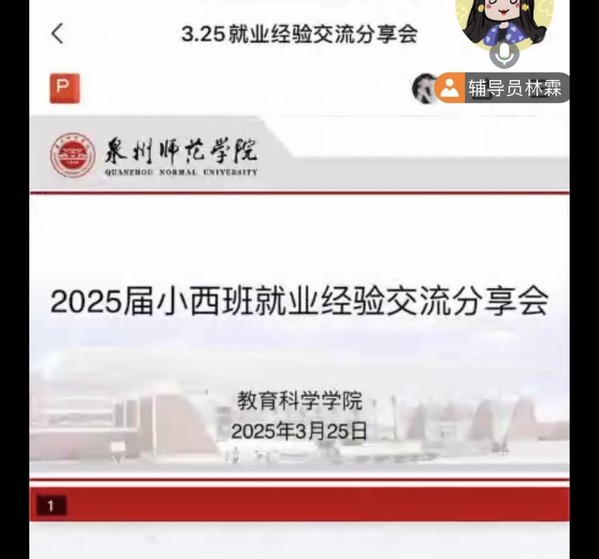 为帮助2025届小学教育(西藏班)的毕业生们深入了解就业形势和报考学习规划,3月25日晚上7点,教育科学学院开展了小学教育(西藏班)专场线上就业经验交流分享会。本次会议邀请了2024届小学教育(西藏班)的郭涵同学和阿旺曲珍同学为学弟学妹们分享备考经验,此次会议共有三十余位同学参加。