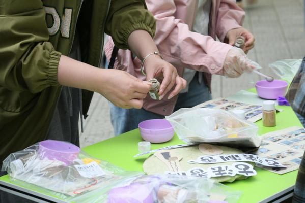 铝罐叮当,彩泥翻涌,洗净的易拉罐和奶茶瓶子被裹上七彩黏土,塑造成春日花园等场景,赋予了废旧物品新的生命,让环保理念和自然美学在手中生根发芽。