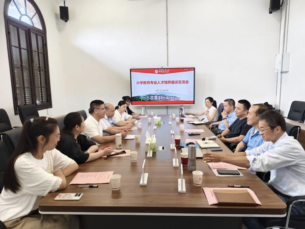 陈祖棋对教育科学学院一行的到访表示欢迎,并介绍了该学院在小学教育专业建设上的历史沿革、师资队伍建设以及人才培养成果等情况。