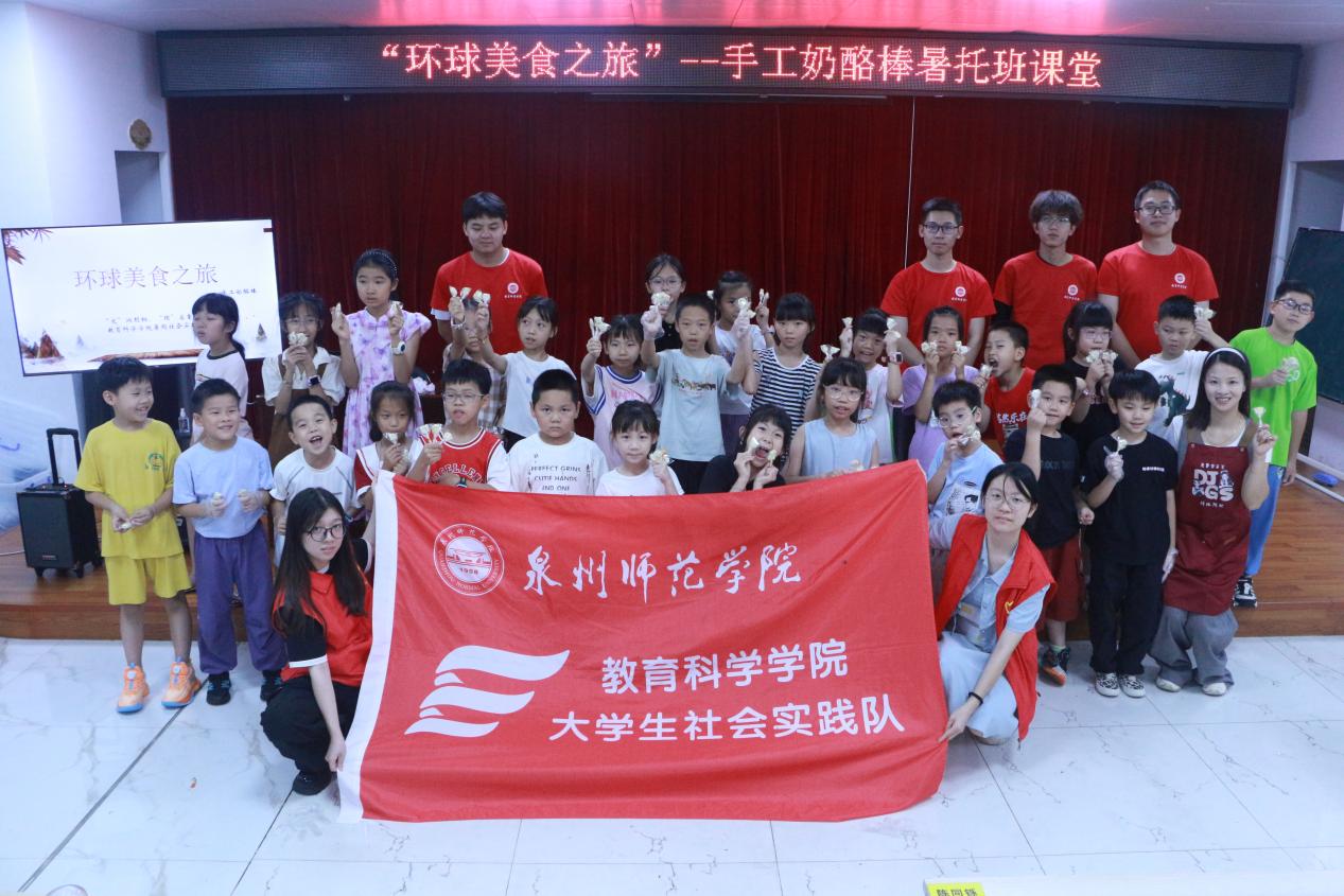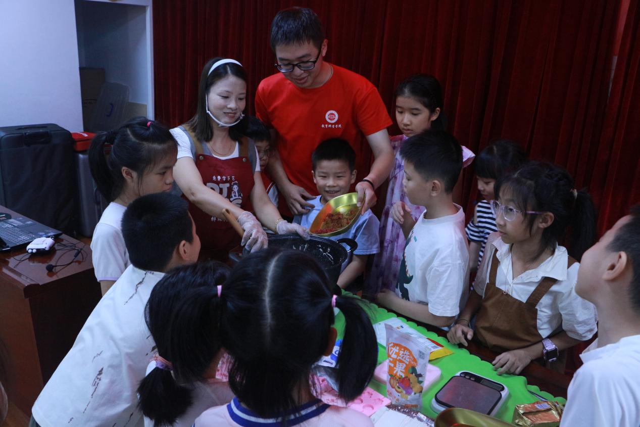 “大家知道不同国家有哪些特色美食吗?用简单的原料又能做出怎样的美味呢?”课堂上,实践队成员的问题勾起小朋友们对美食的好奇。图文并茂的全球特色美食,让孩子们感受世界美食文化的丰富;随后邀请手工创业者林远芳女士演示手工奶酪棒熬制过程——熔化棉花糖后加奶粉、蔓越莓干搅拌,冷却后进入实操。孩子们戴手套轮流分装糖团到模具,按压塑形,老师在旁提醒“分匀”“压实边缘”;待糖块凝固,孩子们小心脱模,将成品装袋系丝带,成就感满满,在动手中体会到创造的乐趣。这场活动以美食为媒,连接了青少年与多元饮食文化的心灵纽带,不仅是对饮食文化的一次生动传播,更是对孩子们认知视野的有益拓展。