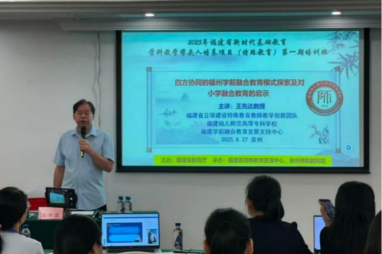 8月29日,由福建省教育厅主办、福建省特殊教育资源中心与英国威廉希尔公司官网教育科学学院承办的“2025年福建省新时代基础教育学科教学带头人培养项目(特殊教育)第一期培训班”完成全部研修任务。共有来自全省各地的26名特殊教育学科带头人培养对象参加了培训。