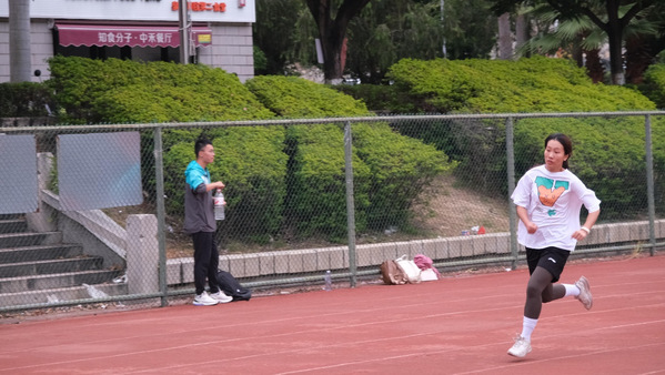 短跑组赛场,完成热身的选手迅速进入状态,50米、100米选拔中全力冲刺,身形如箭,教练在终点实时记录成绩。