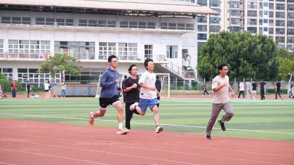 长跑组区域,充分拉伸让选手更好适应耐力比拼,3000米、5000米赛程里,大家相互鼓劲稳步前行,教练随程给出步频调整建议。