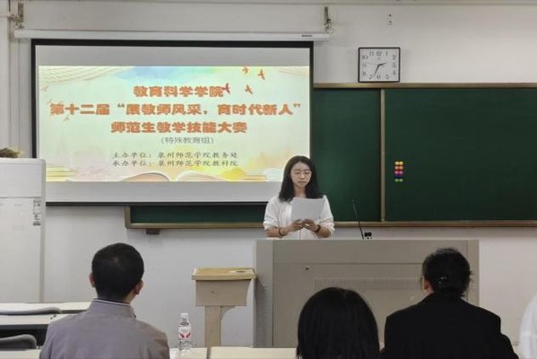 为助力师范生以赛砺能,锻造扎实教学功底、涵养卓越专业素养。日前,我院在特教大楼举办了第十二届师范生教学技能大赛,本次大赛分为小学语文组、小学数学组、学前教育组、特殊教育组四组。