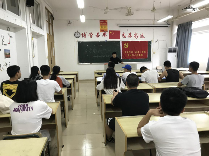 首先,由江涛、姚志强、徐亚伟、郑煌等肆名申请转正的同志依次上台做简短的发言,汇报预备期一年中的思想、学习、工作以及生活上的感悟、收获及表现等情况。然后由第六党支部成员分别对其作出评价,说明该同志在这一年预备期内的优缺点,还有待改善和提高的地方,并表达是否建议其转为正式党员。申请转正的同志回避,由支部成员进行投票。投票结果是6名待转正同志全部顺利通过。最后,由支部书记侯栋梁老师作总结性发言,对转正的党员给予肯定和表示祝贺的同时,还强调各位同志在以后的学习生活中要更加刻苦、更加务实、更加自律。