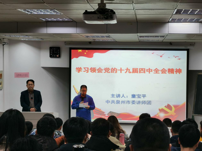 本次培训童宝平副教授就“学习领会党的十九届四中全会精神”带领大家领会了会议的重要性,围绕“一、意义重大,影响深远 二、显著优势,彰显自信 三、坚持完善,再造辉煌”三方面内容展开“党的十九届四中全会的精神”传授。之后,童宝平副教授向我们讲述了新中国成立七十周年来我们中国的飞速发展,在党的带领下我国的产业结构持续优化升级、基础产业和基础设施实现重大飞跃,科学、教育、社会事业欣欣向荣。还带领我们深入了解“中国特色社会主义和国家治理体系的科学内涵、发展成就和本质特征”,让我们明白了“中国共产党为什么能”。除此之外,童教授还向我们讲述了我国的总体要求、总体目标、重点任务和中国特色社会主义制度体系。对我们做出了要求:我们要切实强化制度意识,带头维护制度权威,做制度执行的表率,自觉尊崇制度、严格执行制度、坚决维护制度。