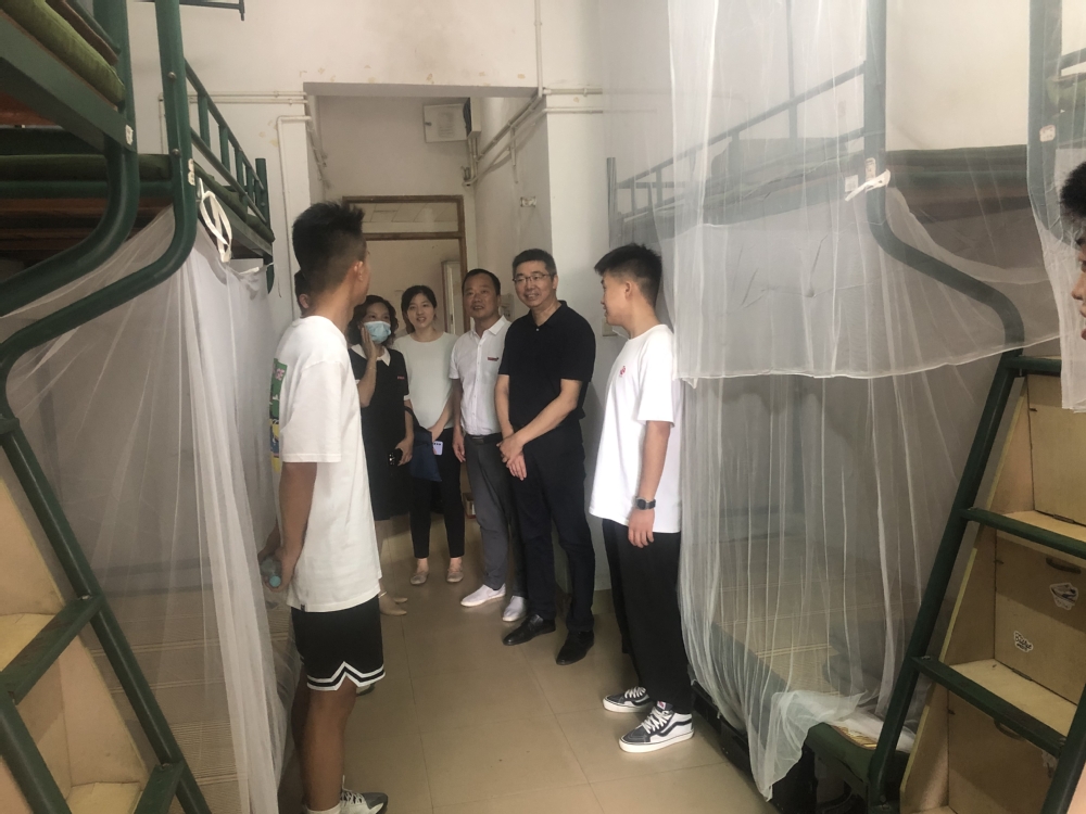 每到一处,黄江昆一行都认真查看了宿舍里的各项设施是否完备,包括洗手间卫生状况是否良好,空调、热水器是否能够畅通使用等。