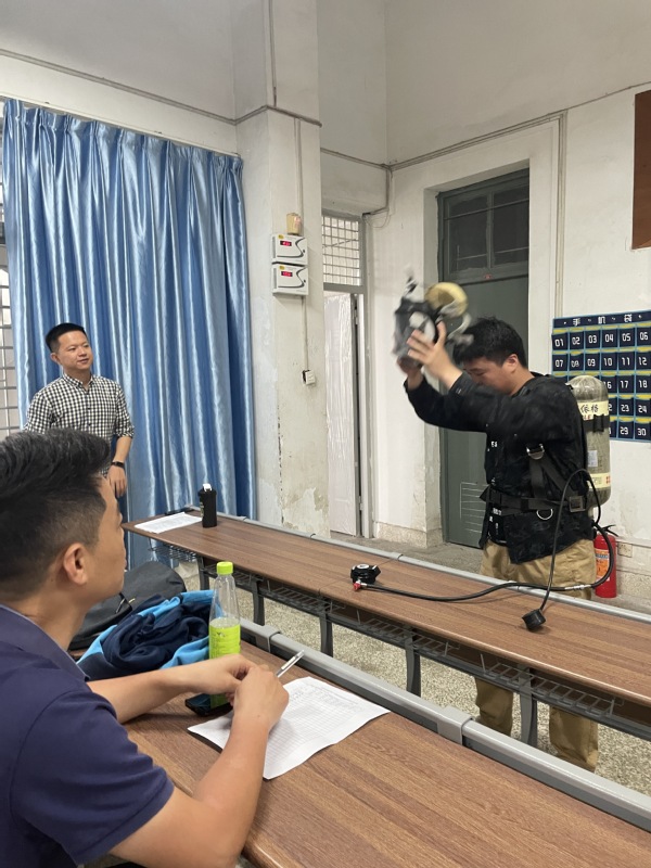 两位老师首先前往航海学院海艺楼,参观集美大学水上训练中心,在中心副主任高建杰老师的陪同下,详细了解了中心的教学设备,教学运行和管理,以及相关实操项目的训练、考核评估等情况;观摩了《船舶高级消防》实操课程现场教学,学习空气呼吸器的使用及教学考核等。双方还就船员适任评估项目的教学管理工作进行了深入交流探讨。