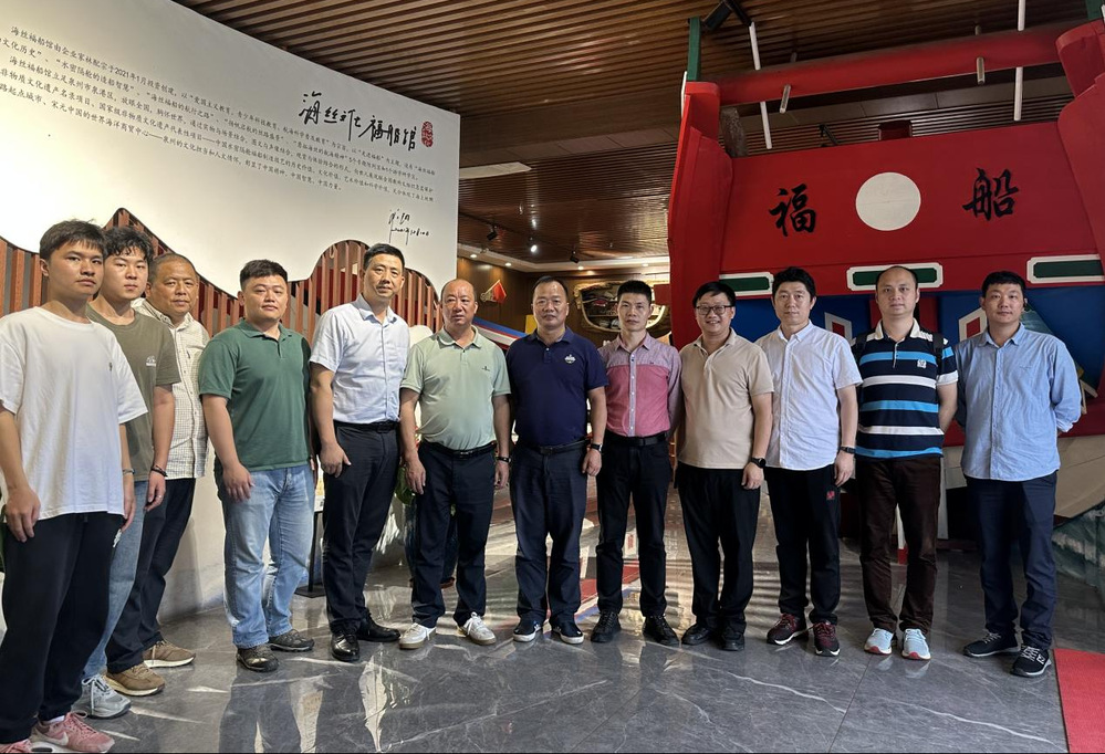 考察团第二站来到了福船非物质文化遗产基地,与福船非遗传承人林配宗进行了深入交流。双方围绕福船文化非遗的传承与发展进行了交流,就未来可能的合作方向进行了富有前瞻性的探讨,加强了学院与非物质文化遗产企业之间的合作关系,也为学院在《船模工坊》课程教学及福船文化遗产研究方面提供了新的思路。