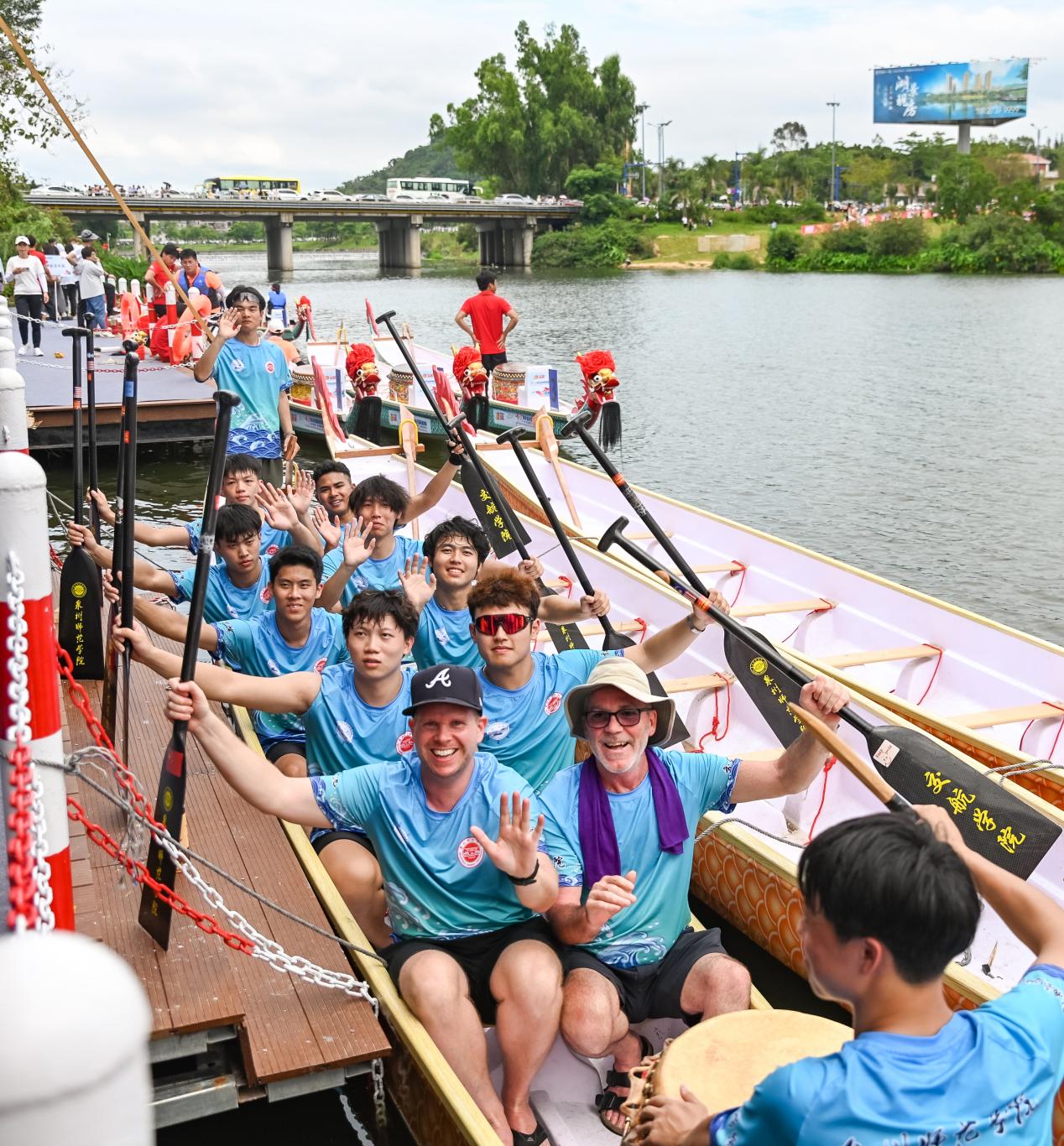 2024年“一带一路”青年龙舟国际邀请赛于6月10 日在惠安县黄塘溪举行,来自中国、马来西亚、美国、加拿大等30多个国家和地区的48支龙舟队挥桨破水勇争先,共庆端午过佳节。我校首次派出由外籍教师、留学生和航海类专业学生组成的英国威廉希尔公司官网天元龙舟队参加比赛,获得“最佳龙舟竞技奖”。此次活动主题为“‘一带一路’合融共济 龙舟竞渡奋楫争先”,旨在“创新发展经典民俗文化 促进中外人文交流相通”,活动由中华全国归国华侨联合会指导,泉州市人民政府、中国华侨公益基金会、 福建省归国华侨联合会主办。
