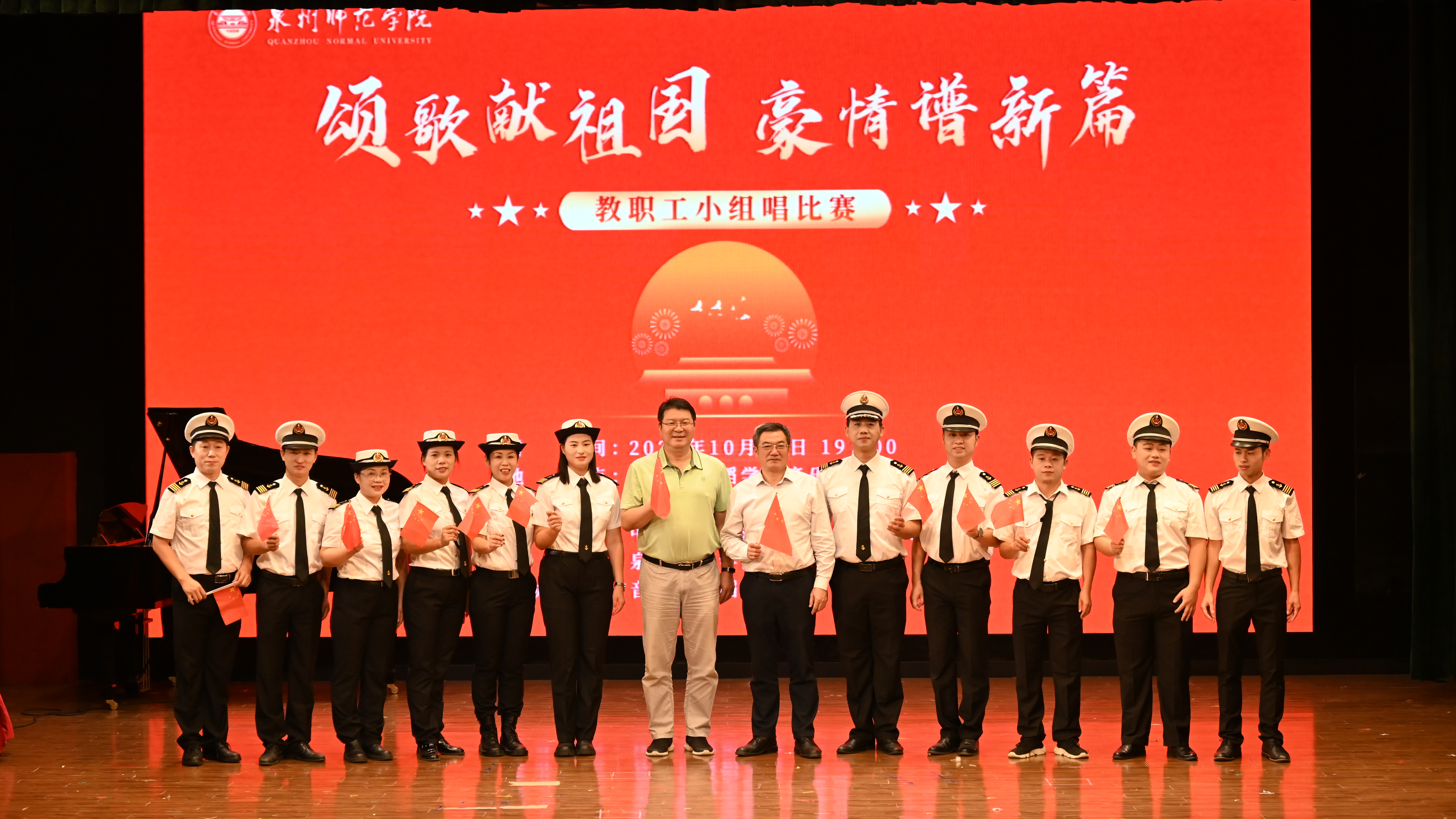 近日,为庆祝中华人民共和国成立75周年,我校举行了一场别开生面的“颂歌献祖国豪情谱篇章”小组唱比赛。经过激烈的角逐,我院代表队凭借出色的表现,荣获本次比赛的二等奖。