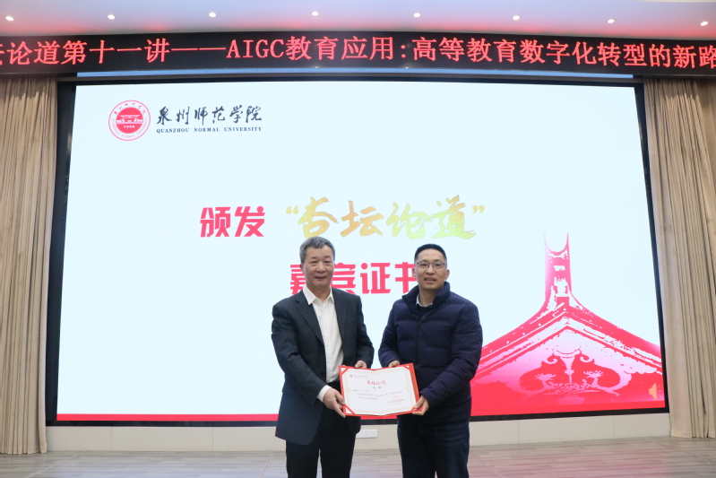 教务处相关负责人主持讲座,并为李欣教授颁发了“杏坛论道”嘉宾证书。(教务处)