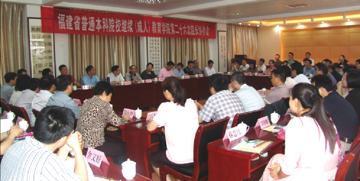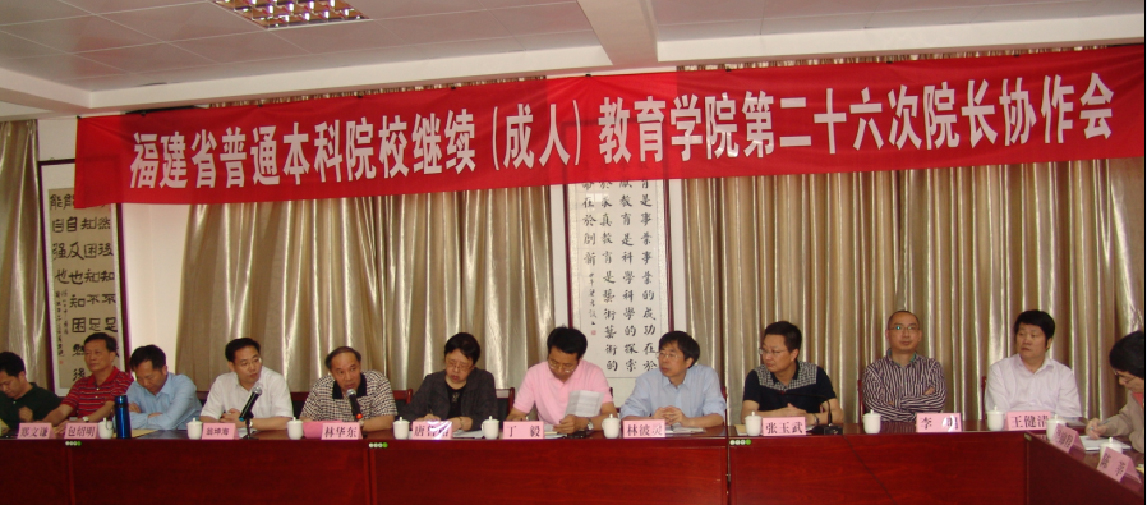 2014年5月20日,福建省普通本科院校继续(成人)教育学院第二十六次院长协作会在泉州市德化县教师进修学校召开。福建省教育厅高教处正处级调研员唐鲁榕,我校林华东副校长,福建省教育考试院院长助理丁毅、自考处处长林彼灵、会成处副处长王健清,德化县副县长翁坤海、教育局局长黄文和、教育工委副书记赖礼锋,以及我校继续教育学院领导出席会议。来自全省20所本科院校继续(成人)教育学院的院长,办公室、培训处主任,以及继续教育学院成教中心负责人共68人参加会议。继续教育学院党总支书记张玉武主持会议欢迎仪式,院长协作会主席、福建师范大学网络与继续教育学院常务副院长包绍明主持协作会研讨会。