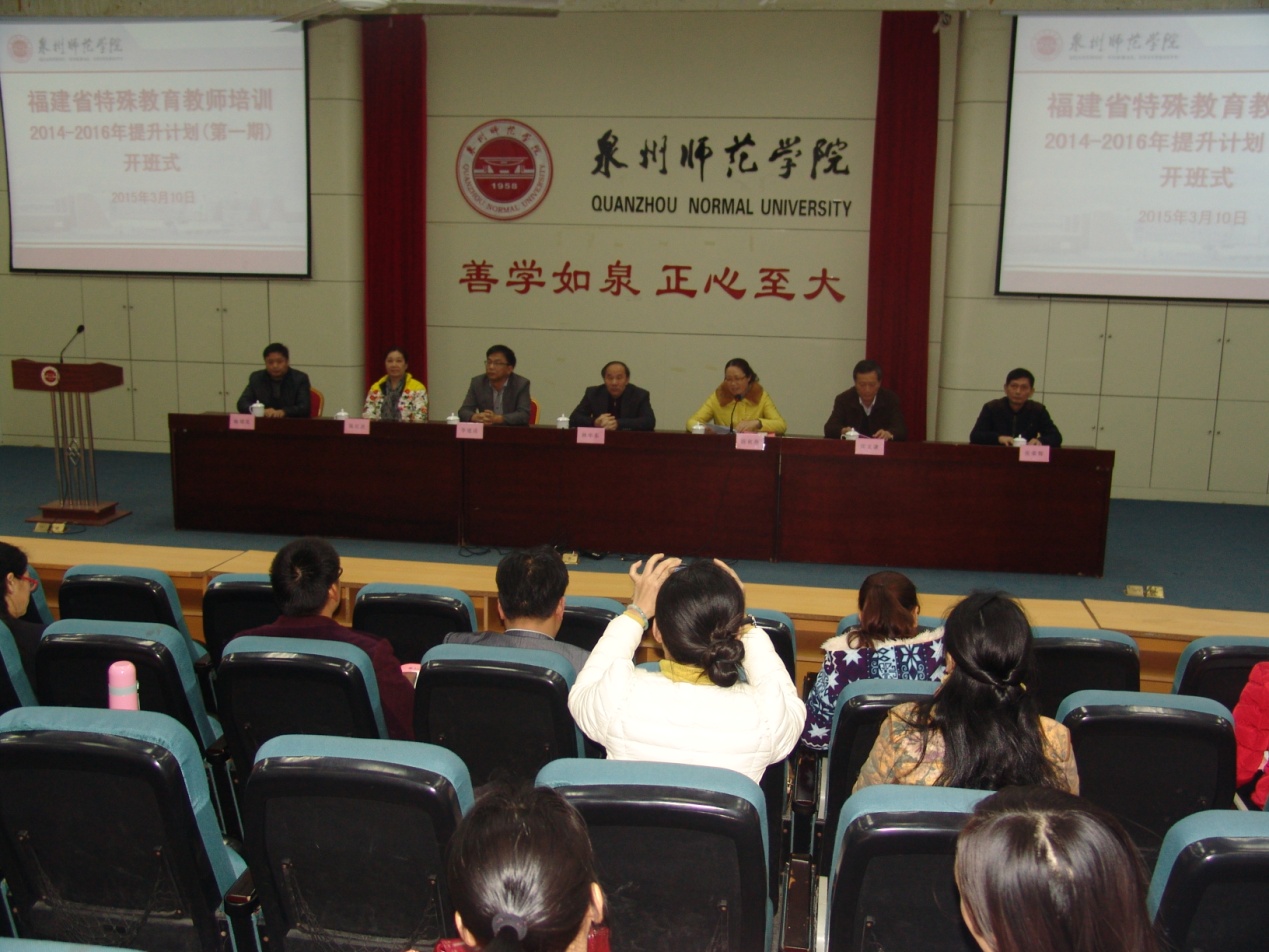 2015年3月10日上午,福建省特殊教育教师培训(2014—2016年提升计划·第一期)开班式在中山纪念堂三楼报告厅举行。林华东副校长出席开班式。继续教育学院、教育科学学院领导和老师,以及来自全省各地市120多名特殊教育学校教师参加。继续教育学院院长陈秋燕主持开班式。