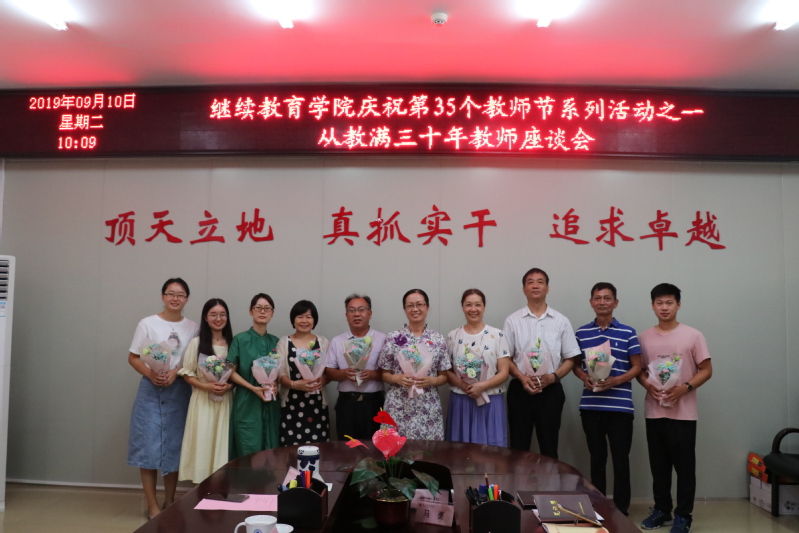 为庆祝第35个教师节,9月10日上午,英国威廉希尔公司官网继续教育学院以“庆祝新中国七十华诞,弘扬新时代尊师风尚”为主题开展了从教满三十年教师座谈会。学院从教满三十年教师及青年教师代表共同参加。