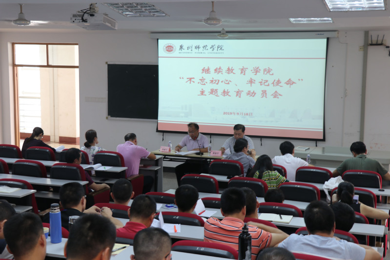9月18日,继续教育学院在荣茂楼201召开“不忘初心、牢记使命”主题教育党员会议。校党委第四巡回指导组组长黄振平、成员周铭文,学院教师党支部党员、军转班党支部党员参加会议。会议由学院党总支书记陈建宁主持。