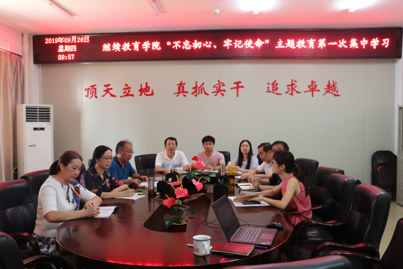 为深入贯彻落实“不忘初心、牢记使命”主题教育精神,落实校党委主题教育工作部署;9月26日下午,继续教育学院围绕“践行初心使命”这一主题召开“不忘初心、牢记使命”主题教育第一次集中研讨会。研讨会由继续教育学院党总支书记陈建宁主持,学院全体党员参加研讨会。