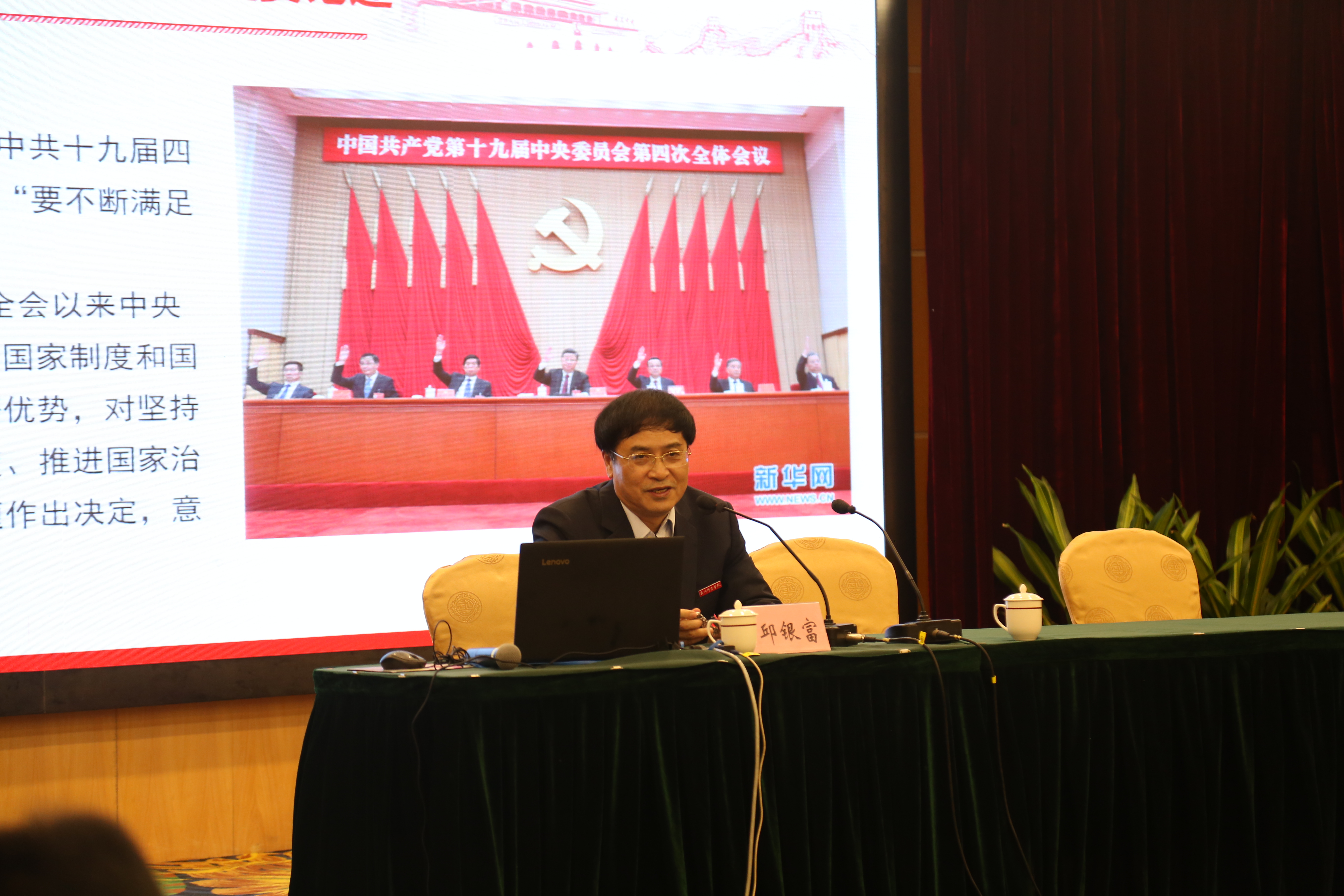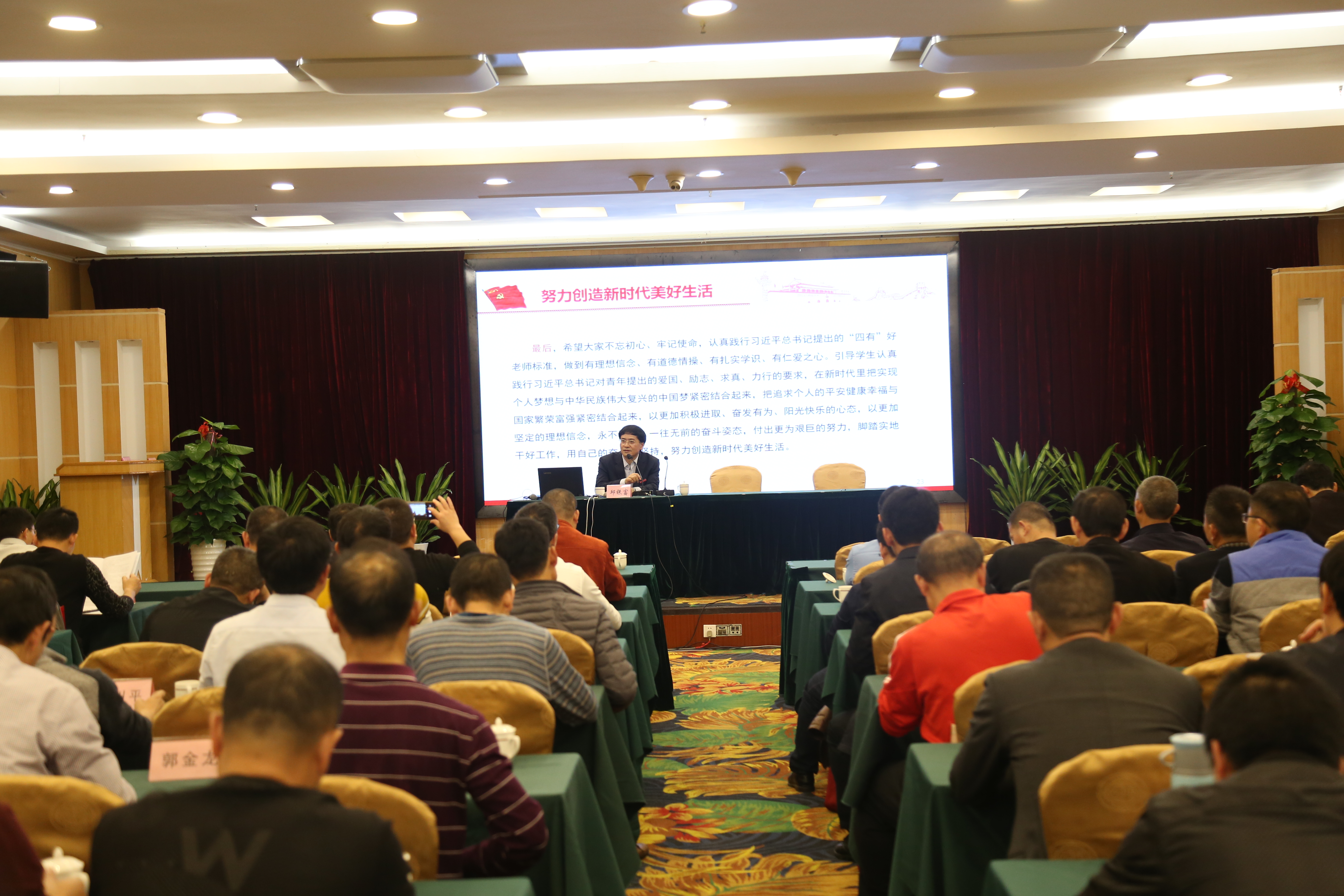 12月25日下午,校党委常委、纪委书记邱银富应邀为2019年泉州市乡村中学校长助力工程培训班学员上党课。党课以“贯彻党的十九届四中全会精神、努力创造新时代美好生活”为主题,由继续教育学院党总支书记陈建宁主持,培训班全体学员参加。