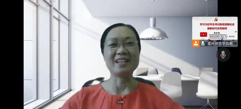开班式后,继续教育处处长、继续教育学院院长陈秋燕教授为全体学员作《学习习近平总书记教育重要论述 做新时代优秀教师》专题讲座。陈秋燕全面深入地剖析了习近平总书记的教育哲学观、教育社会观、教师观与德育观等内容,为教育工作者指明了教育的本质和任务。她勉励学员们要牢记教育初心,努力成为新时代 “四有”好老师。