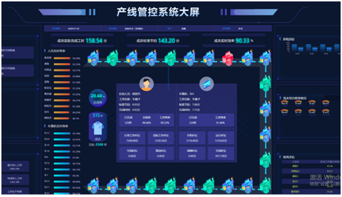 提供一种高智能化的纺织服装行业产线管控实时服务。在纺织服装车间产线管控中,运用基于数字孪生的生产环境实时仿真建模方法(车间三维可视化监控系统),实现实时生产数据的模拟可视化监控,查看生产计划执行状态、生产历史和生产绩效等。在现场生产数据的合理利用方面,结合数据挖掘技术,运用基于大数据的产线管控效能分析与优化方法,以合理调度各个生产环节的人员,从而提高服装生产效率。