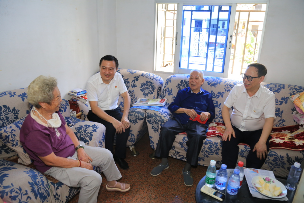 屈广清一行先后看望慰问了张永年、傅维葵、吴端阳、陈宏干等离和“5·12”干部,为他们送去党组织的关怀和温暖,并致以节日的祝福和问候。屈广清与老干部们促膝交谈,忆往昔、展未来,详细询问了老干部的身体状况和生活情况,叮嘱他们要照顾好自己。屈广清向老同志介绍了近几年来学校的办学成就以及更名大学的奋斗目标,肯定老同志们为党的事业以及学校的发展作出的重要贡献,感谢他们围绕学校事业高质量发展提出的宝贵意见建议。学校将结合党史学习教育和“再学习、再调研、再落实”活动,积极宣传弘扬老干部们的先进事迹和崇高精神,引导广大师生员工在建设特色鲜明的一流应用型大学的新征程中奋勇争先建功立业。