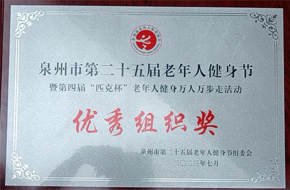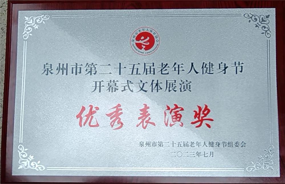 据悉,颁奖仪式共有15个单位荣获泉州市第二十五届老年人健身节暨第四届“匹克杯”老年人健身万人万步走活动“优秀组织奖”、共有7个单位荣获开幕式文体展演“优秀表演奖”。(校老体协)
