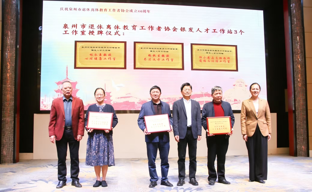 11月30日泉州市退休离休教育工作者协会“银发人才工作站”的首批三个工作室授牌,其中两个工作室由我校退休教师牵头设立,分别为林永乐教授心理健康工作室杨秋生教授书画文学工作室