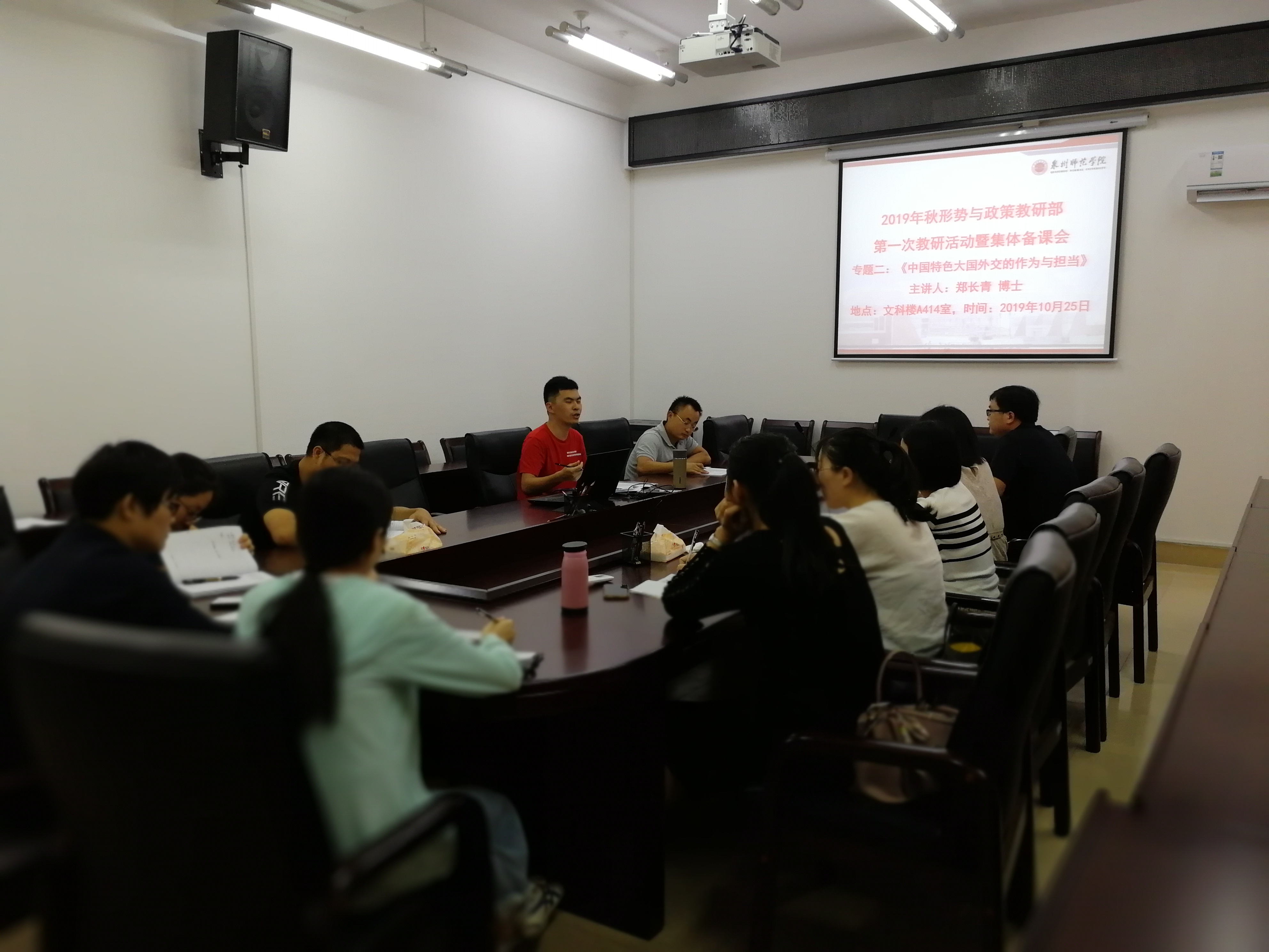20191025日,马克思主义学院形势与政策教研部举行2019季第次教研活动暨“中国特色大国外交的作为与担当”(专题)集体备课会邀请郑长青博士到会辅导郑博士从专题教学的背景、主线、成就等方面内容进行辅导,对任课教师有效开展本专题教学启发很大