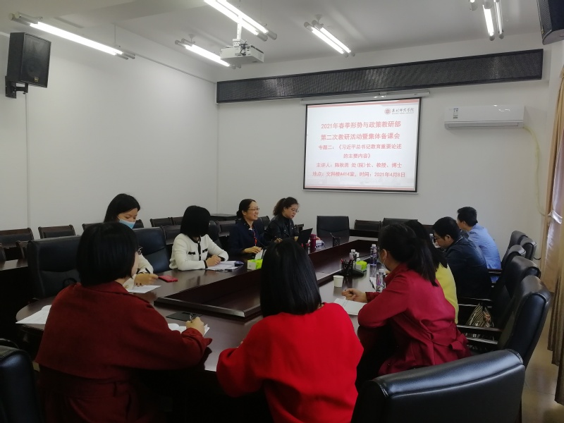 2021年48日,马克思主义学院形势与政策教研部举行2021年秋季第次教研活动暨“习近平总书记教育重要论述的主要内容”(专题)集体备课会,集体备课会再次邀请学校继续教育处(学院)处(长陈秋燕教授、博士到会做辅导报告。