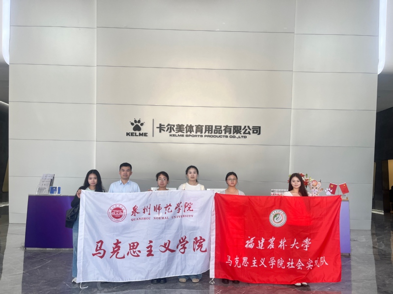 随后,实践队实地探访了扎根晋江的知名体育品牌——卡尔美公司。在其品牌展示厅内,卡尔美工作人员通过详的介绍与产品现场展示,向队员们全景式地呈现了企业在产品研发创新、前沿设计理念、精益生产流程以及多元化营销策略等全产业链运作的详细情况。在此过程中,实践队重点调研卡尔美如何在“晋江精神”的指引下实现高质量发展。在“爱拼敢赢、敢为人先”等晋江精神的深刻熏陶与激励下,该公司加大研发投入,积极引进先进技术和管理经验,凭借这些努力在竞争激烈的体育用品市场中成功占据一席之地,展现出强劲的发展活力。
