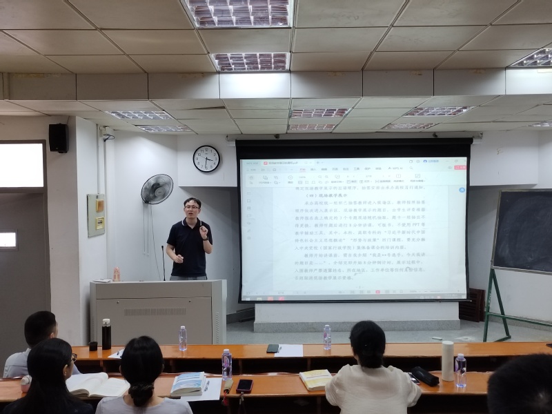 会上,董慧鹏老师围绕“现场教学的准备过程”这一焦点现身说法,与大家分享参赛经验。他以参赛现场教学题目为案例,指导参赛教师如何解题、备赛。他强调,教学展示重点考查思政课教师的教学水平、知识储备和解疑释惑的综合能力,需要参赛教师赛前精心准备、赛中平稳心态、灵活应变,赛后总结反思,抓住思政课教学的痛点、难点、热点,充分展现思政课教师的教学水平与个人风采。