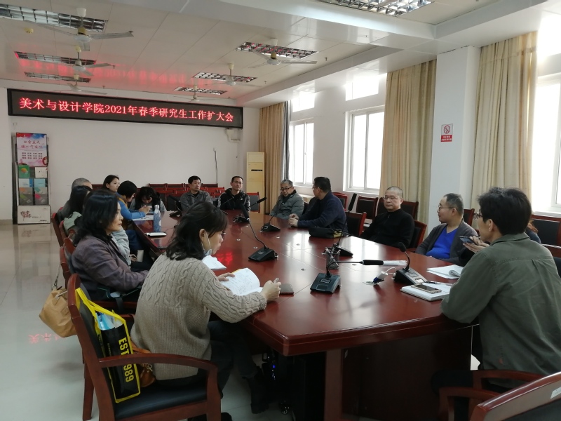 3月25日下午,美院召开2021年春季研究生工作扩大会,会议由蔡永辉院长主持,全体硕士生导师及相关人员参加。会上,蔡院长首先对研究生复试工作进行了部署,强调了考风考纪、复试过程中的管理等工作,以确保今年研究生招生工作顺利进行。
