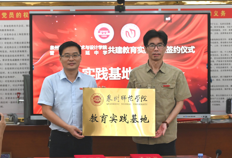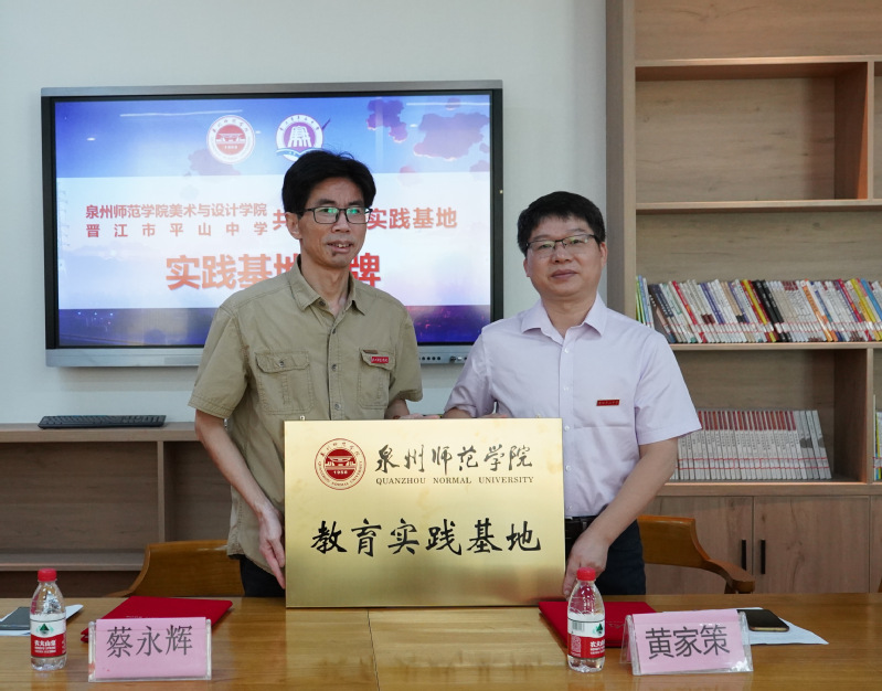 为提高我院美术学专业学生的综合素质和社会实践能力,9月22日上午,我院与晋江市季延中学、晋江市平山中学共建教育实践基地揭牌仪式分别在各实践基地举行。蔡永辉院长分别与晋江季延中学校长陈文段、晋江平山中学校长黄家策共同揭牌。