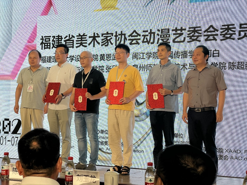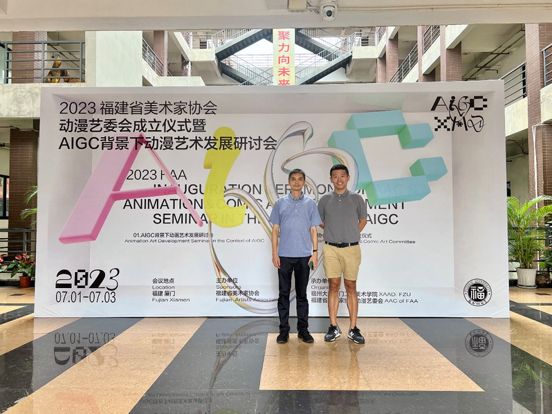2023年7月2日,福建省美术家协会动漫艺委会成立仪式暨AIGC背景下动漫艺术发展研讨会在福州大学厦门工艺美术学院召开。我院副院长陈超淼,教师蔡希阳受邀参加,陈超淼副教授被聘为福建省美术家协会动漫艺委会第一届委员会委员。