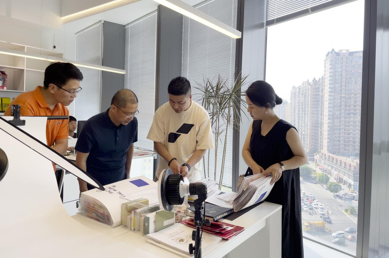 公司创始人吴总带领我们参观公司的产品展示厅、办公环境,为我们展示讲解公司收集的各种包装材质范本。从材料、工艺、创意灵感等方面详细介绍了为盼盼、亲亲等品牌公司设计开发的系列包装设计案例。