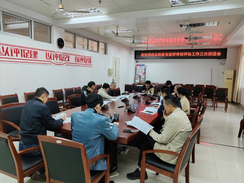 11月29日上午,美术与设计学院在213会议室召开本科教育教学审核评估工作三次推进会,学院行政领导、各系部专业主任及部分行政人员参会,陈超淼副院长主持会议。