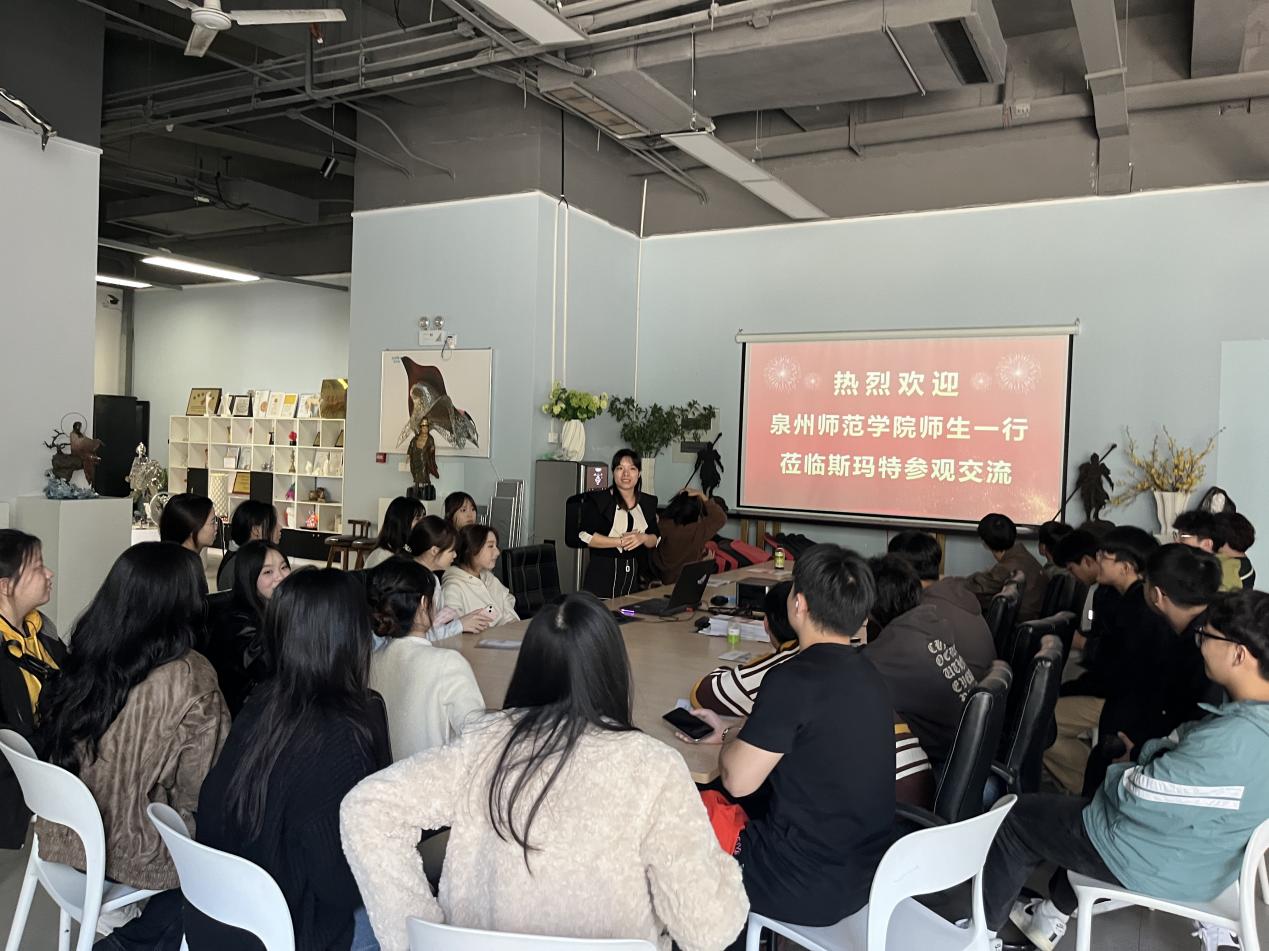 活动中,师生先后参观了两家公司的设计中心、产品展示厅。厦门斯玛特工业设计有限公司负责人向师生展示了公司近年来打造的爆款产品案例,并详细介绍了从概念设计到量产落地的全流程;泉州到位工业设计有限公司则重点分享了其在文创产品、工业装备设计领域等的创新成果,其“设计+制造”的一体化服务模式令师生印象深刻。