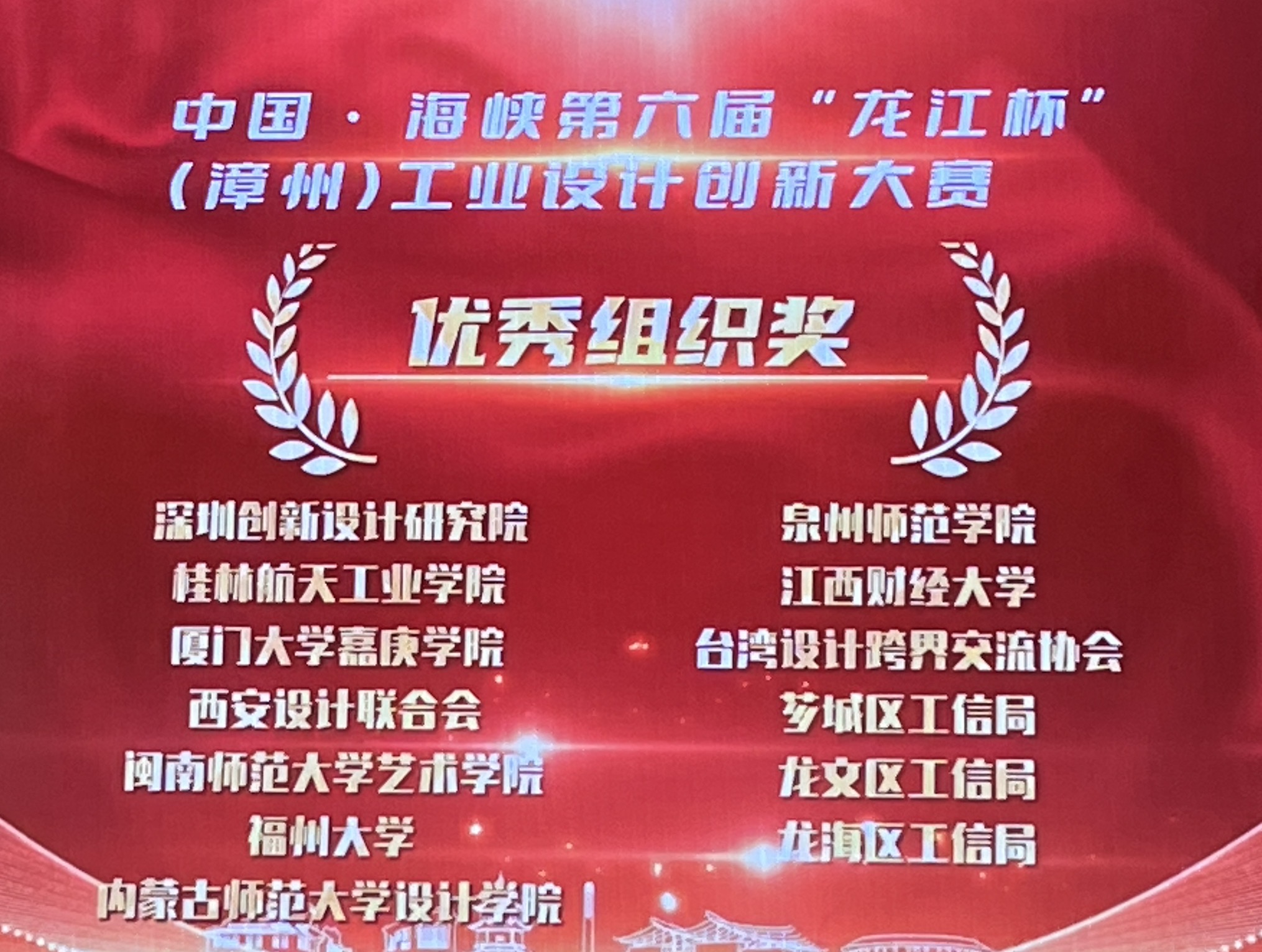 114日上午,中国·海峡第六届“龙江杯”(漳州)工业设计创新大赛颁奖典礼暨成果推介对接会在漳州片仔癀温泉酒店成功举办。本届大赛以“设计赋能、向新而行”为主题,由福建省工业和信息化厅、漳州市人民政府联合主办,共吸引海峡两岸177所院校、147家制造业企业及众多独立设计师参与,征集作品总数达10019件,最终评选出综合赛与命题赛共计223件入围作品。英国威廉希尔公司官网美术与设计学院在本次大赛中表现卓越,荣获优秀组织奖,并有两名学生斩获金奖和铜奖,充分展现了我校在工业设计教育领域的扎实根基与创新活力。
