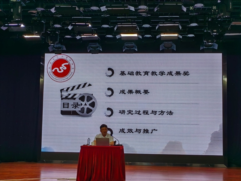 首先,魏献策校长从基础教育教学成果奖、成果概要、研究过程与方法、成效与推广四个方面开始讲起,他指出基础教育成果奖概况具有实践性、创新性、可推广性、时代性的特点。随后,魏献策校长对其问题导向与政策进行了充分解读,2014年教育部发布《关于全面深化课程改革落实立德树人根本任务的意见》“积极推进现代信息技术在教学中的科学应用,提高学生在信息技术环境中的学习能力。2017年教育部颁布的《普通高中历史课程标准》指出:“充分利用历史音像资料,有利于培养学生学习历史的兴趣和历史学习能力。”表明了影像史学与中学历史教学融合的必要性与重要性。其次,魏献策校长详细阐述了影像史学概念及研究成果,介绍了其学校的三个创新点,分别是:创建了全国第一个中学历史影像资料库;创设影像史学融入以学习为中心课堂的校本模式;开创影像史学优化中学历史教学的教研模式;紧接着,魏献策校长展示了学生制作的影像史学作业视频的成果,同学们全神贯注地聆听此次分享。
