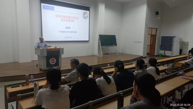 10月19日下午,广东海洋大学原副校长章超桦教授在孙中山纪念堂5楼为我院全体新生讲授了一堂专业导论课。本次开设的专题为《海洋生物资源利用现状及其发展趋势》,从“蓝色粮仓”——我国水产生物资源概况、海洋生物资源的利用价值、海洋食品产业发展现状及其存在问题、海洋食品产业发展趋势等四个方面向同学们介绍了我国水产在提高海洋资源开发能力,发展海洋经济,保护海洋生态环境,维护国家海洋权益,建设海洋强国的现状及发展趋势。章教授通过大量图片资料及数据,用通俗的表述风格,让学生感觉到如浸海洋世界、深入养殖与加工车间、身处热闹的海鲜市场。听者入迷,授者忘我,90分钟的学术报告让同学们收获满满,深刻了解海洋生物资源开发与国发经济建设的密切关系,也一定会促进海洋与食品学院三个专业学生的求知欲望,正确树立大学四年的学习目标。