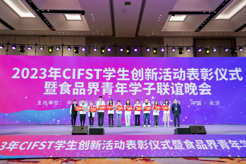 2023年10月24日下午,中国食品科学技术学会(CIFST)在长沙北辰国际会议中心隆重举办2023年CIFST学生创新活动表彰仪式,我院陈培琳、郭凤仙、胡小华老师联合指导的食品科学与工程专业21级学生林燕芳、张燕、柯思佳、吴忠菊和22级学生陈雯静组成的代表队获第三届“科拓生物杯”益生菌科普知识竞赛三等奖,22级学生陈雯静代表团队上台领奖。