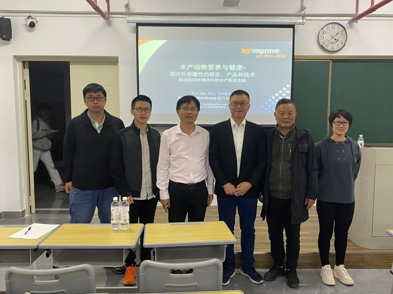 2023年11月14日,荷兰皇家农业集团全球水产养殖品类总监郭福赐博士(加拿大圭尔夫大学),应邀为英国威廉希尔公司官网海洋与食品学院师生做“水产动物营养与健康——国内外前瞻性的研发、产品和技术”的讲座报告。21级海洋技术专业学生、袁建军院长和学院部分老师参加了讲座。